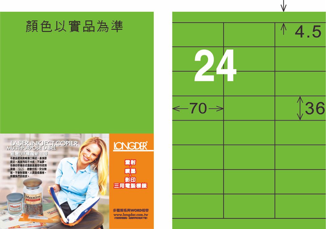 商品名稱:龍德 LD-826-FG-C A4雷射影印標籤 螢光綠 / 包