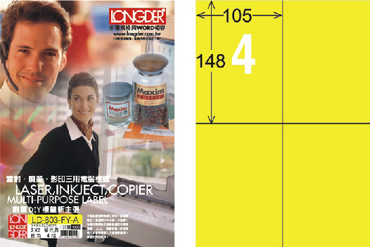 商品名稱:龍德 LD-803-FY-A A4雷射影印標籤 螢光黃 / 盒