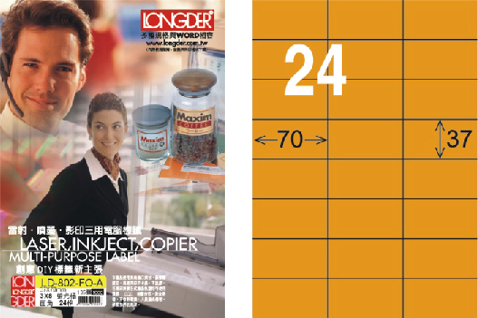 商品名稱:龍德 LD-802-FO-A A4雷射影印標籤 螢光橘 / 盒