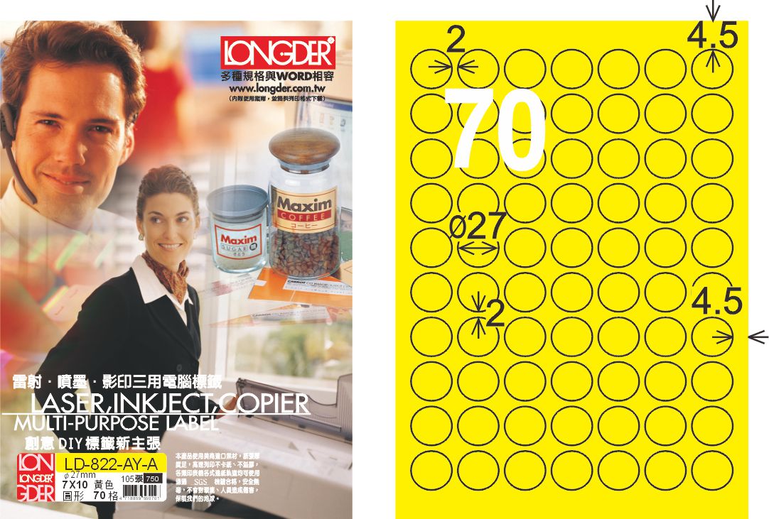 商品名稱:龍德 LD-822-AY-A A4雷射影印標籤 黃銅版 / 盒