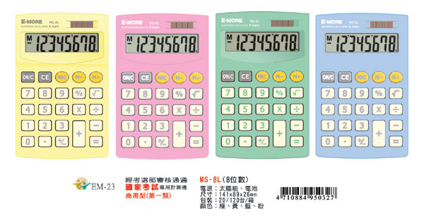 >{振昌文具}E-MORE 國家考試計算機 MS-8L /台 (顏色隨機出貨)