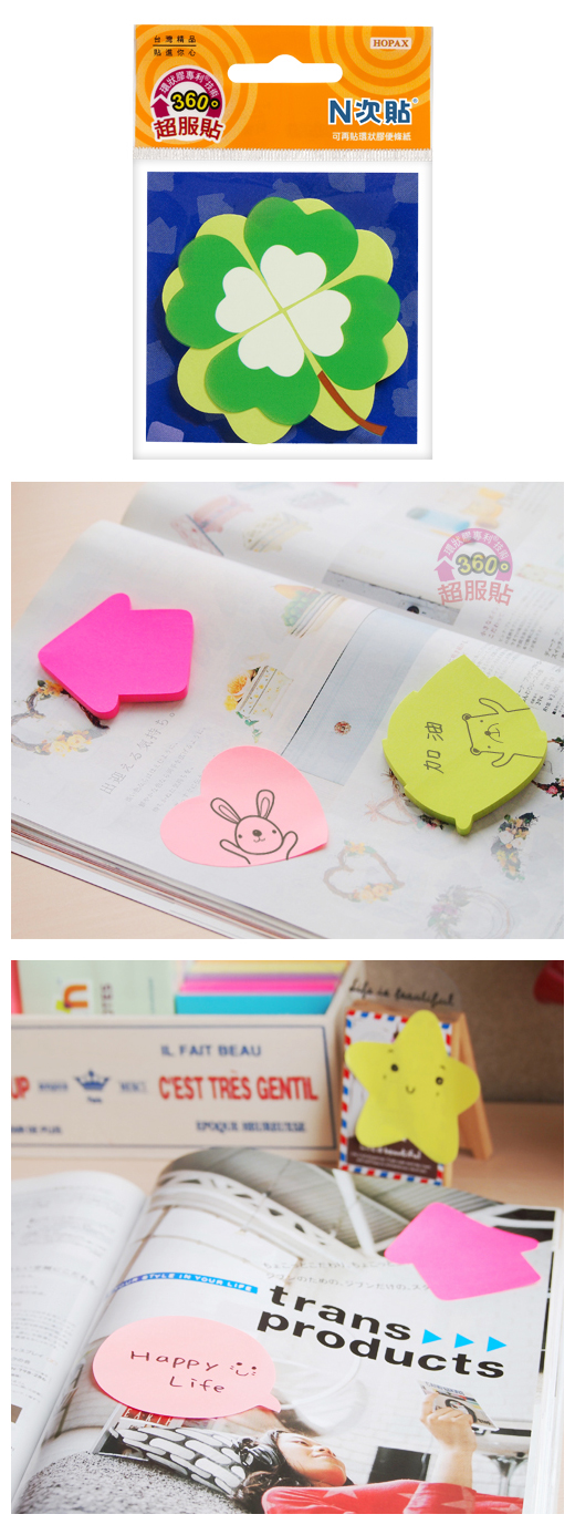 四邊皆可隨意撕取不受方向限制,易撕好黏書寫流暢,多款趣味造型,