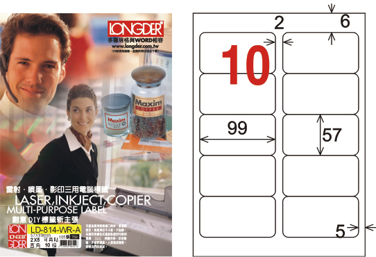 商品名稱:龍德 LD-814-WR-A A4模造可再貼 白色 / 盒