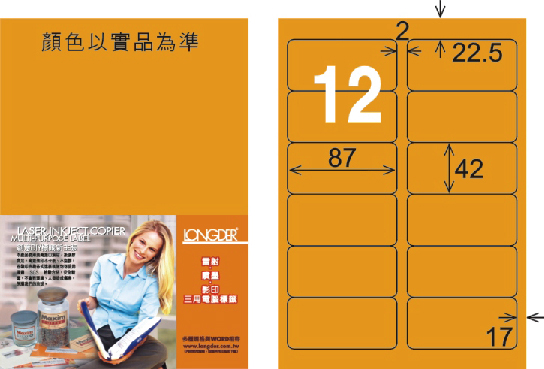 >龍德 LD-810-FO-C A4雷射影印標籤 螢光橘 / 包
