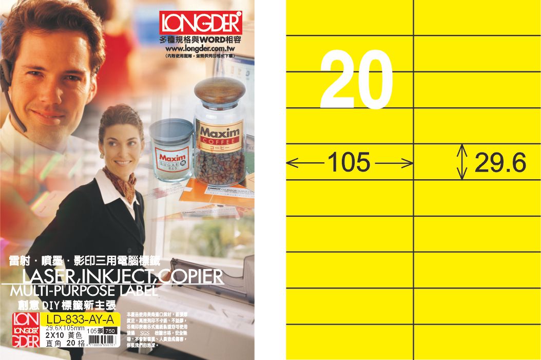商品名稱:龍德 LD-833-AY-A A4雷射影印標籤 黃銅版 / 盒