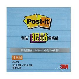 【3M】640S-2 利貼 狠黏 可再貼便條紙(橫格系列) 藍 90張/本