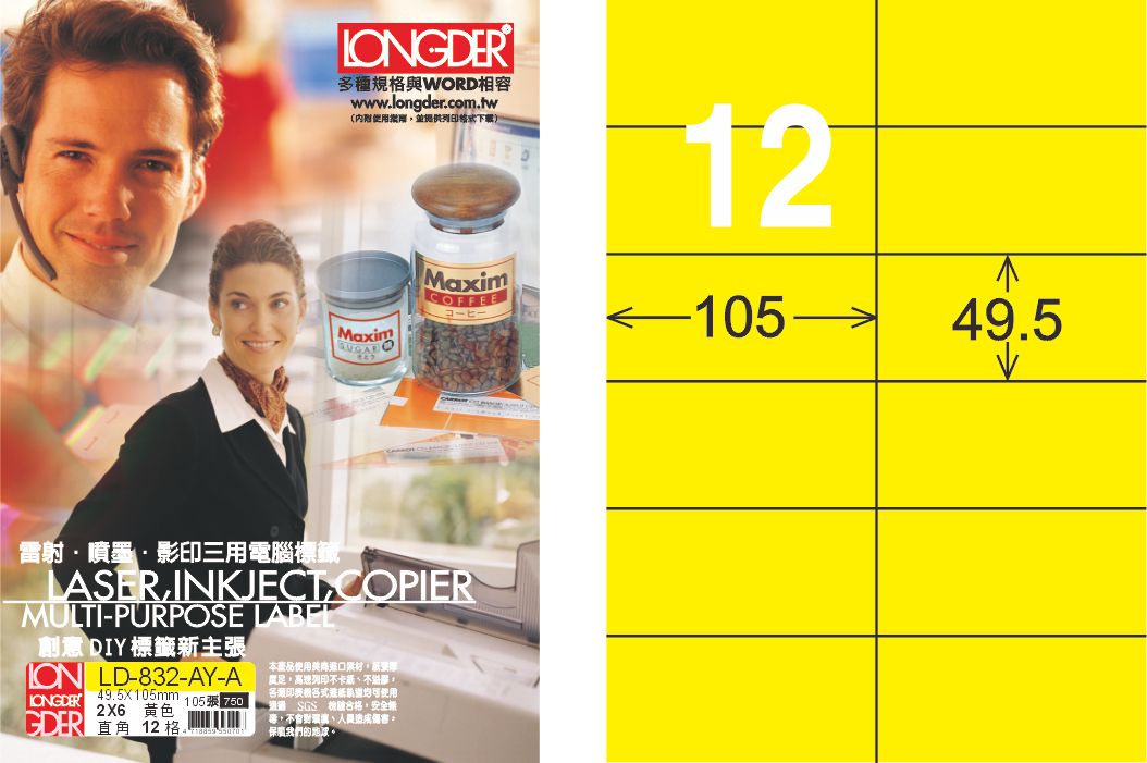 商品名稱:龍德 LD-832-AY-A A4雷射影印標籤 黃銅版 / 盒