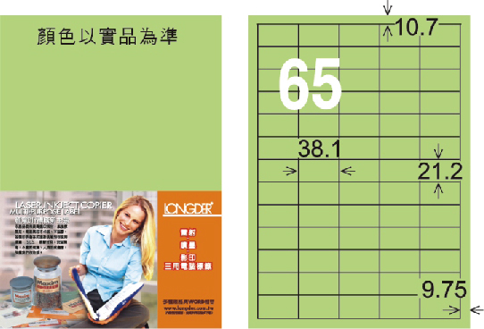 商品名稱:龍德 LD-806-G-C A4三用電腦標籤 淺綠色 / 包