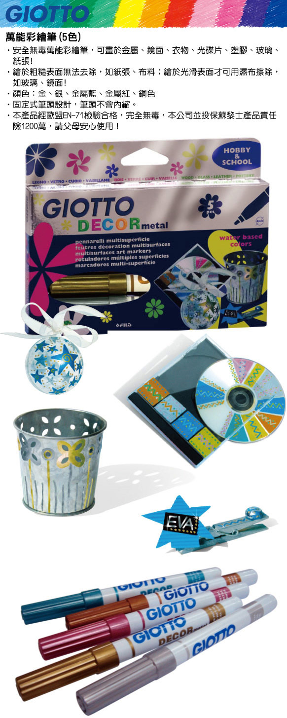 {振昌文具}【請先來電洽詢庫存】【義大利 GIOTTO】452900 萬能彩繪筆 5色/盒