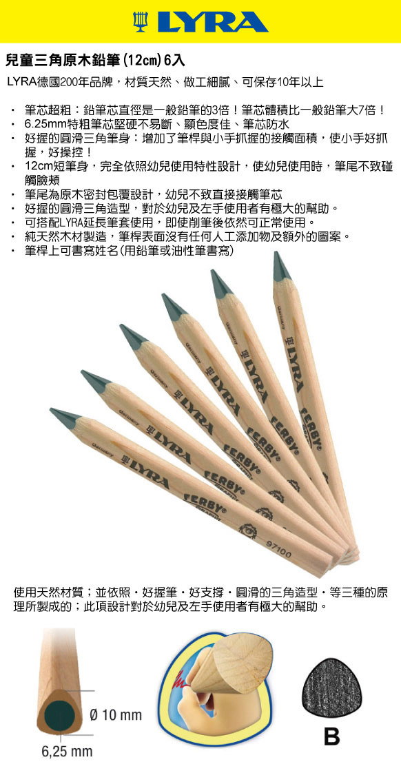 >{振昌文具}【請先來電洽詢庫存】【德國LYRA】1810101-6 兒童三角原木鉛筆(12cm) 6入 / 盒