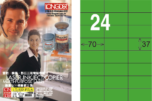 商品名稱:龍德 LD-802-FG-A A4雷射影印標籤 螢光綠 / 盒