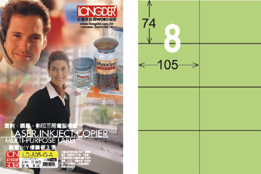 商品名稱:龍德 LD-805-G-A A4三用電腦標籤 淺綠色 / 盒