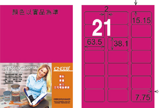 商品名稱:龍德 LD-817-FP-C A4雷射影印標籤 螢光粉紅 / 包