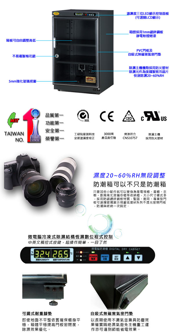 卓越 DRY 微電腦冷凍式防潮箱 DRY-60 /台