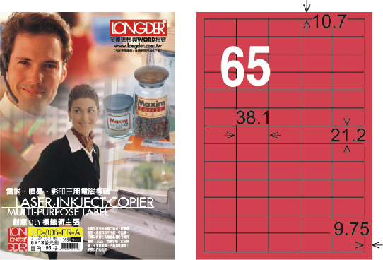 商品名稱:龍德 LD-806-FR-A A4雷射影印標籤 螢光紅 / 盒
