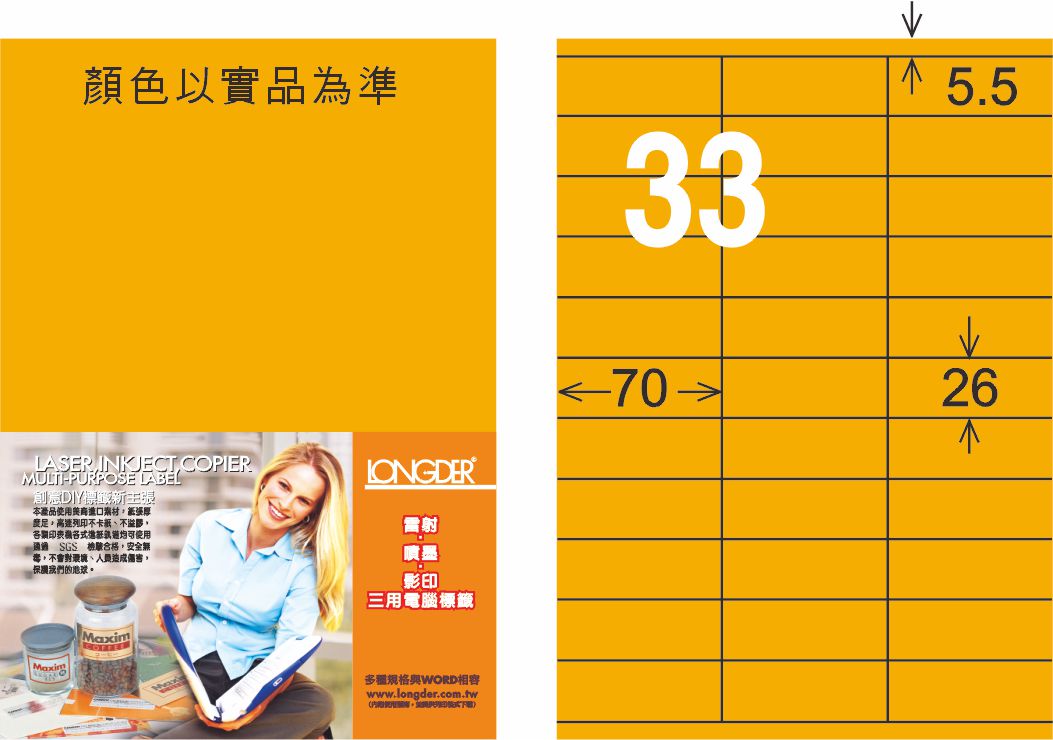商品名稱:龍德 LD-835-FO-C A4雷射影印標籤 螢光橘 / 包