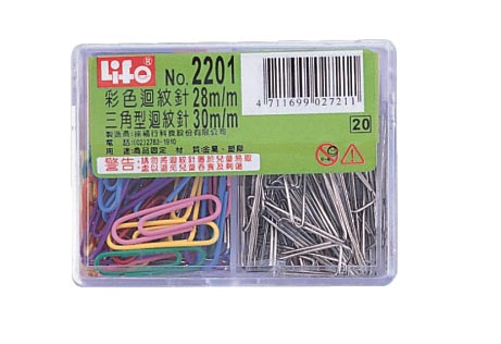 商品名稱:LIFE 徠福 NO.2201 豪華型(彩色迴紋針60支入、三角迴紋針60支入) / 盒