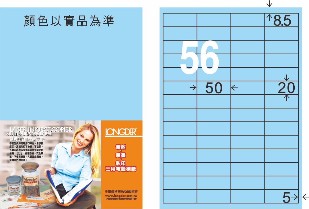 商品名稱:龍德 LD-824-B-C A4三用電腦標籤 淺藍色 / 包