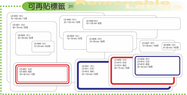 商品名稱:龍德 可再貼標籤 LD-4002 (34x73mm) /包