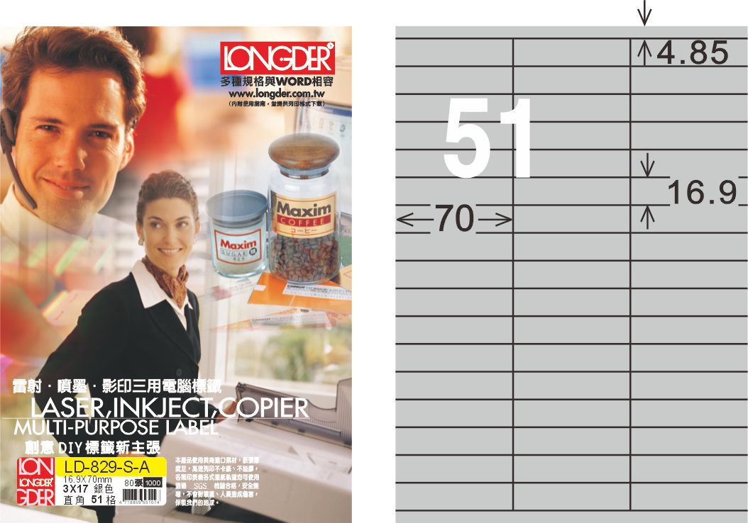 >龍德 LD-829-S-A A4雷射影印標籤 銀色 / 盒