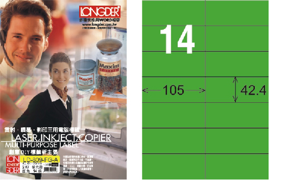 >龍德 LD-809-FG-A A4雷射影印標籤 螢光綠 / 盒