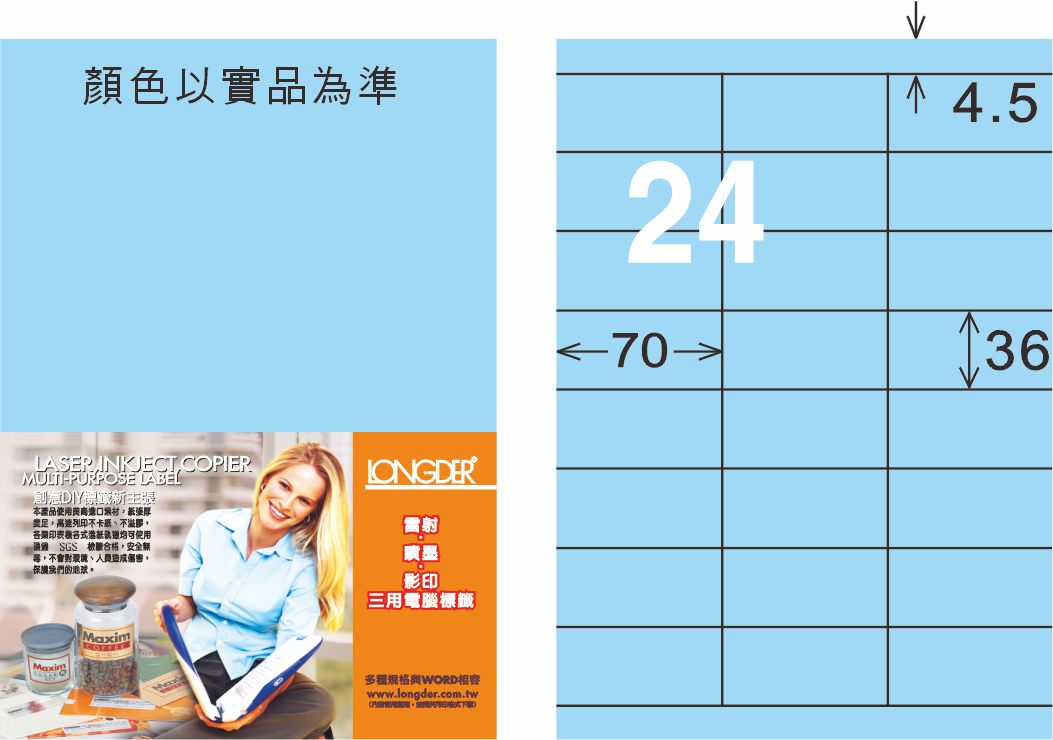 商品名稱:龍德 LD-826-B-C A4三用電腦標籤 淺藍色 / 包