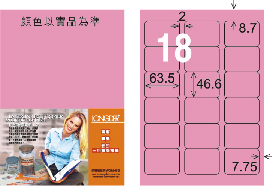 商品名稱:龍德 LD-813-R-C A4三用電腦標籤 粉紅色 / 包