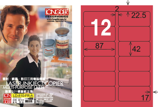 >龍德 LD-810-FR-A A4雷射影印標籤 螢光紅 / 盒