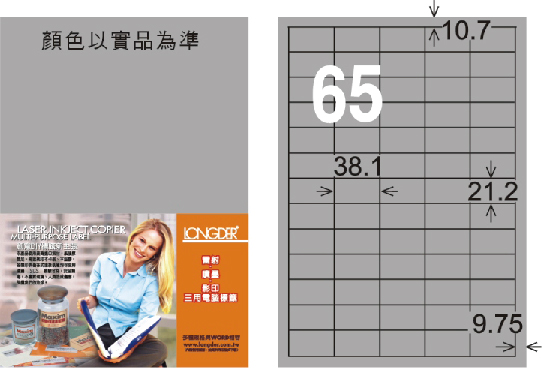 商品規格:寬38.1X高21.2mm - 65格 - 方形直角