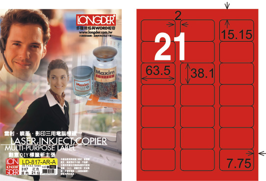 商品名稱:龍德 LD-817-AR-A A4雷射影印標籤 紅銅版 / 盒