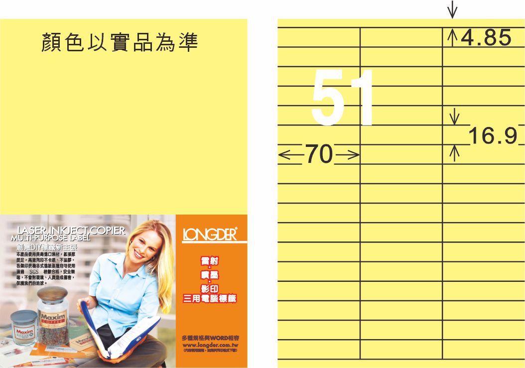商品名稱:龍德 LD-829-Y-C A4三用電腦標籤 淺黃色 / 包