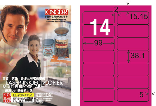 商品名稱:龍德 LD-816-FP-A A4雷射影印標籤 螢光粉紅 / 盒