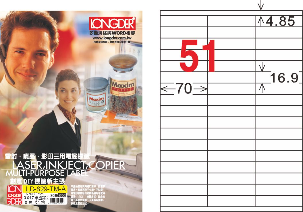 >龍德 LD-829-TM-A A4半透明霧面(三用可列印) / 盒