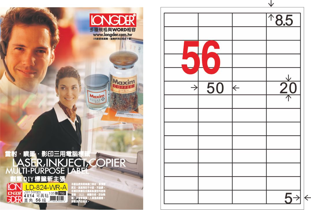 商品名稱:龍德 LD-824-WR-A A4模造可再貼 白色 / 盒