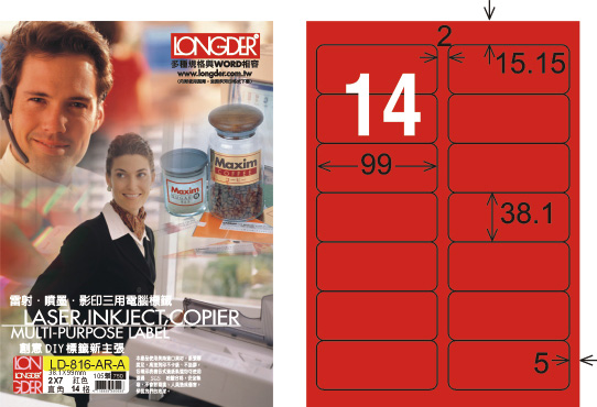 商品名稱:龍德 LD-816-AR-A A4雷射影印標籤 紅銅版 / 盒