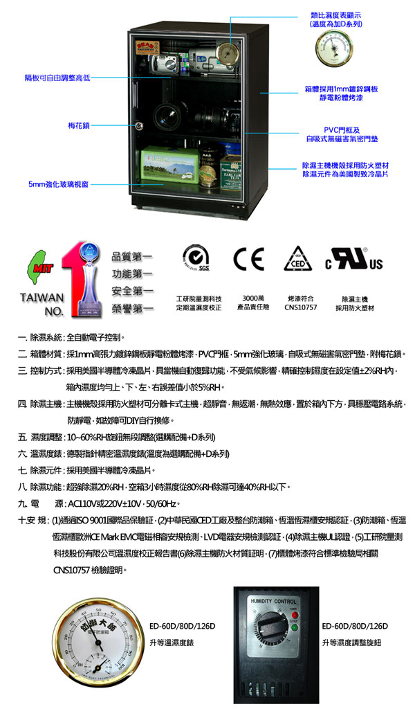卓越 ED 電子冷凍式防潮箱 ED-60D /台