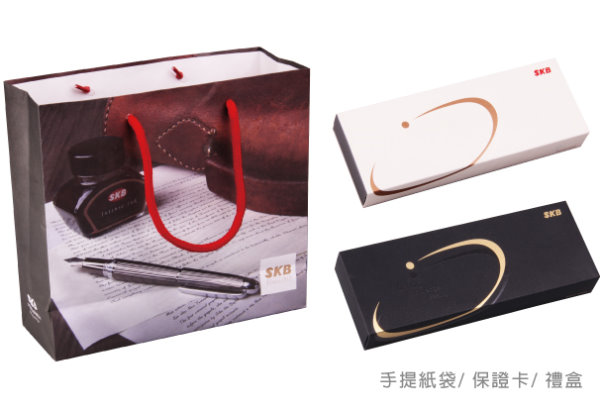 每一個SKB產品都是結合傳統工藝與精密技術。以最精緻的材質所完成的工藝作品。SKB保證所有的材料的品質力求完美無瑕。但若您發現所購買之鋼筆有品質上的問題,請立即與我們連絡。此保證卡保固期限為一年,在正常書寫使用下,若發生故障損壞或零件脫落問題,我們提供免費維修服務。但不包含人為刮傷損壞、 不適當的使用及意外掉落、敲打或嚴重撞擊,及非SKB所認可的廠商維修所產生問題。
