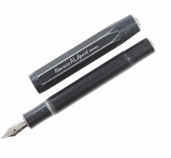 KawecoALSport系列硬質電鍍鋁材,慣用的洗鍊風貌與您鍾愛的洗紋牛仔褲完美搭配,銀色的Kaweco標誌與筆尖,特殊八角造型,可搭配金色或銀色筆夾。內含德國原廠認證保修卡。***內含藍色墨水一支(已放置筆身內)。
