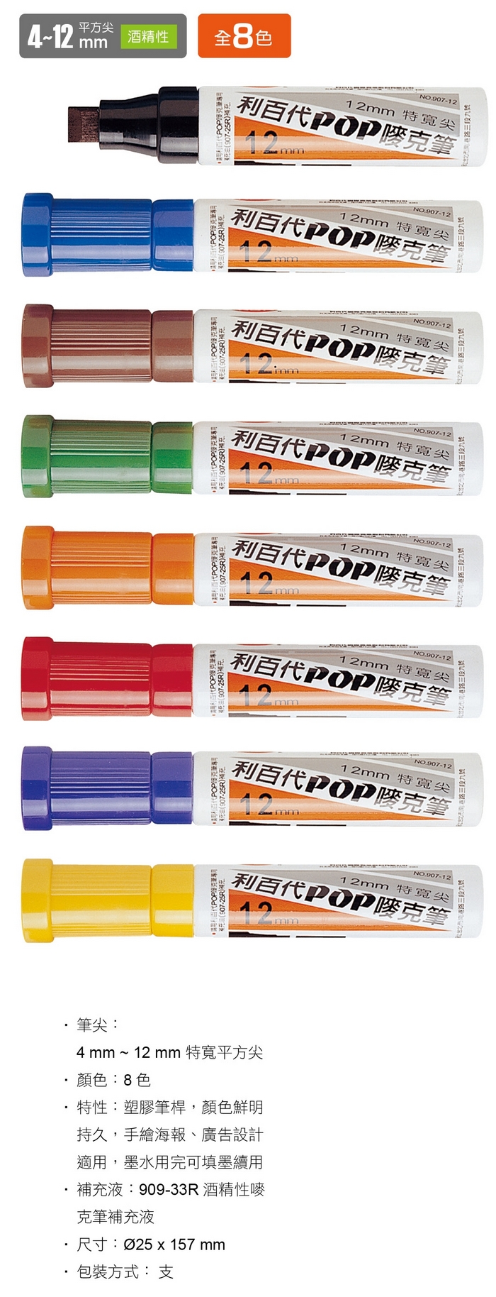 >利百代 4~12mm 平方尖 酒精性 POP 907-12 嘜克筆 麥克筆 /支