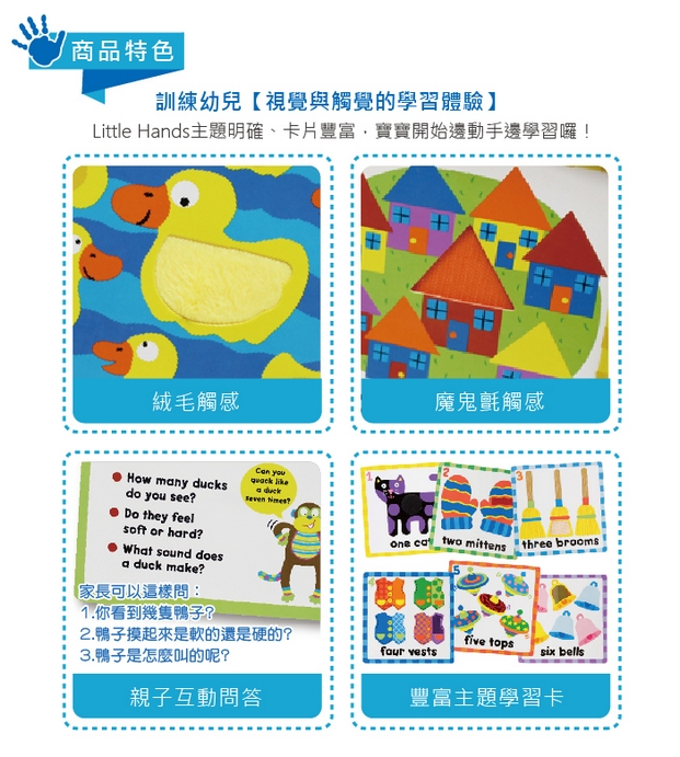 與實際物品相似的材質。背面有圓點可以數數,以及可以跟寶寶互動的問答題!!