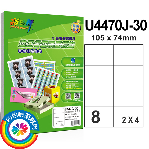 >{振昌文具}【請先來電洽詢庫存】彩之舞 U4470J-30 進口雪面噴墨標籤 2x4/8格直角(105*74mm) - 30張/包