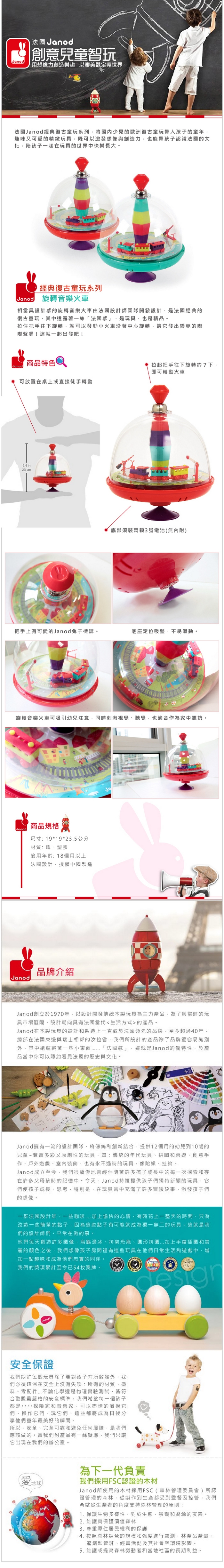>{振昌文具}【請先來電洽詢庫存】【法國Janod】經典復古童玩-旋轉音樂火車 J04126 /組