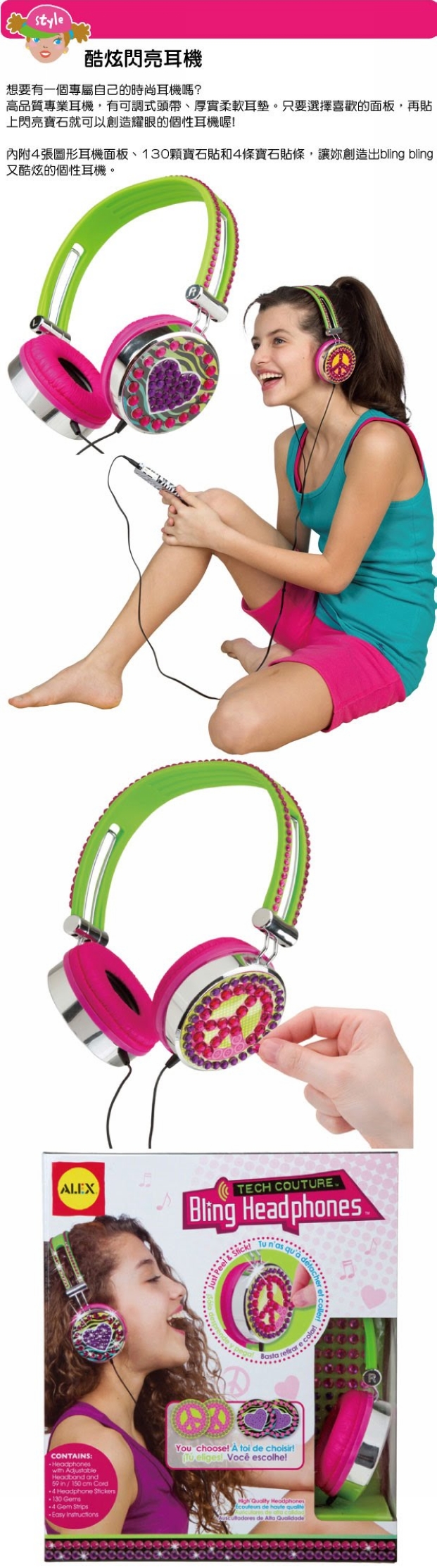 內附4張圖形耳機面板、130顆寶石貼和4條寶石貼條,讓妳創造出blingbling又酷炫的個性耳機。