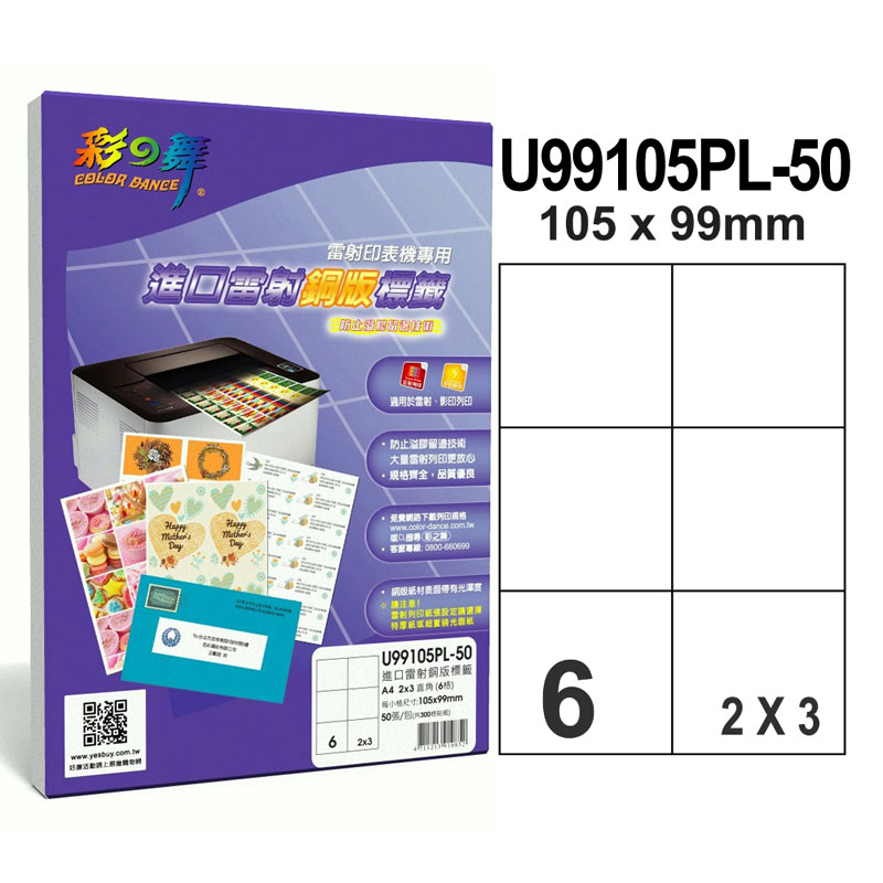 ★紙材規格:A4(210*297mm)2x3直角6格無邊