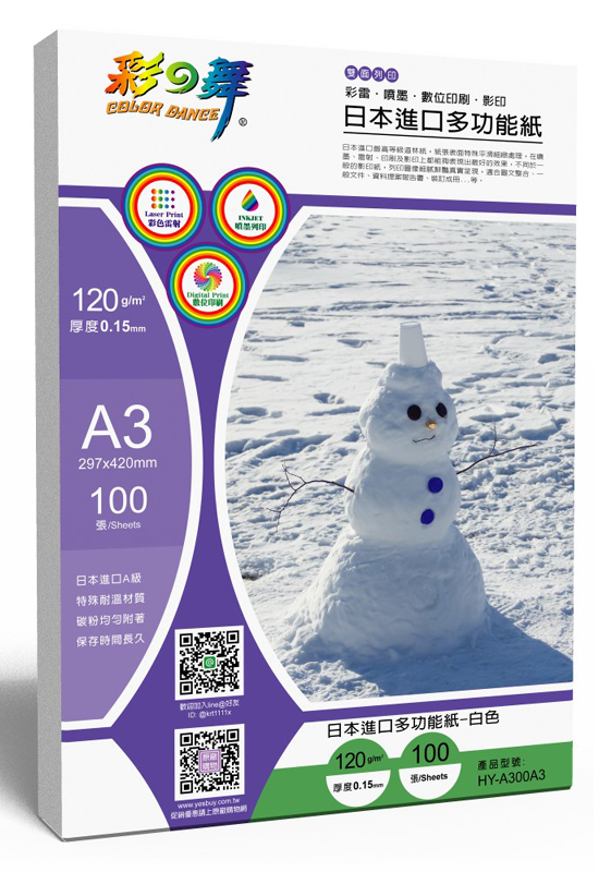 >{振昌文具}【請先來電洽詢庫存】彩之舞 HY-A300A3 厚磅多功能紙-白色 120g A3 (噴墨/雷射/數位印刷/影印) - 100張/包