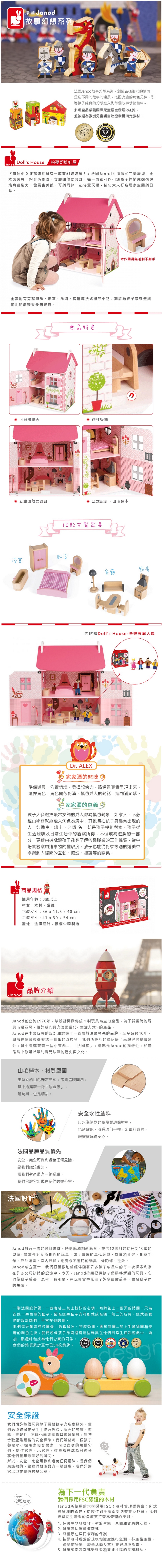 {振昌文具}【請先來電洽詢庫存】【法國Janod】Doll's House-粉夢幻娃娃屋(買大送小)贈-快樂家庭人偶 J06581 /組