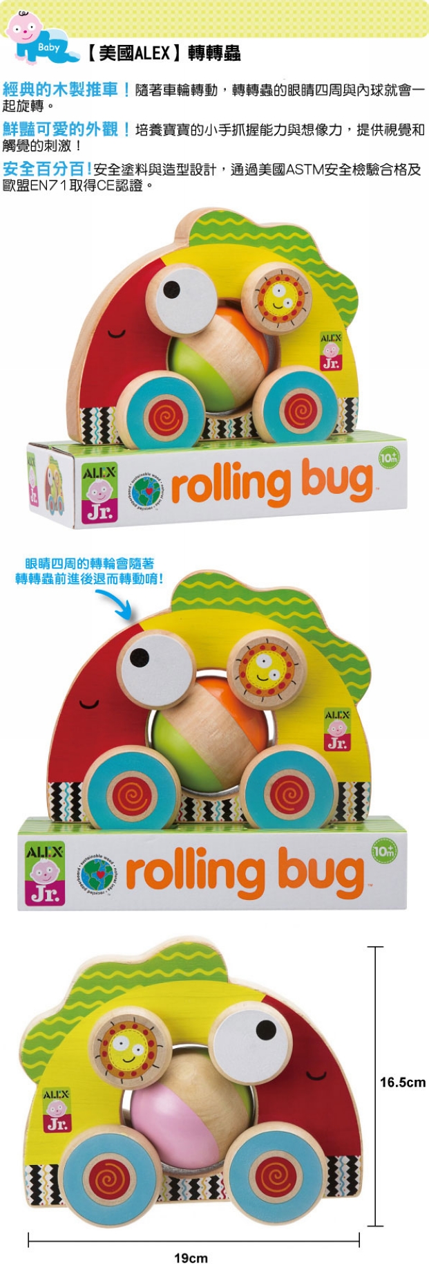 {振昌文具}【請先來電洽詢庫存】【美國ALEX】1951B-1 轉轉蟲 木製推車 /盒