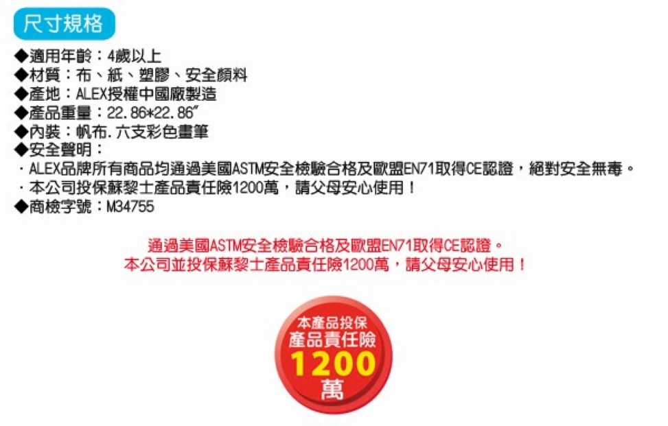 {振昌文具}【請先來電洽詢庫存】【美國ALEX】361W 兒童著色畫布-貓頭鷹 /組