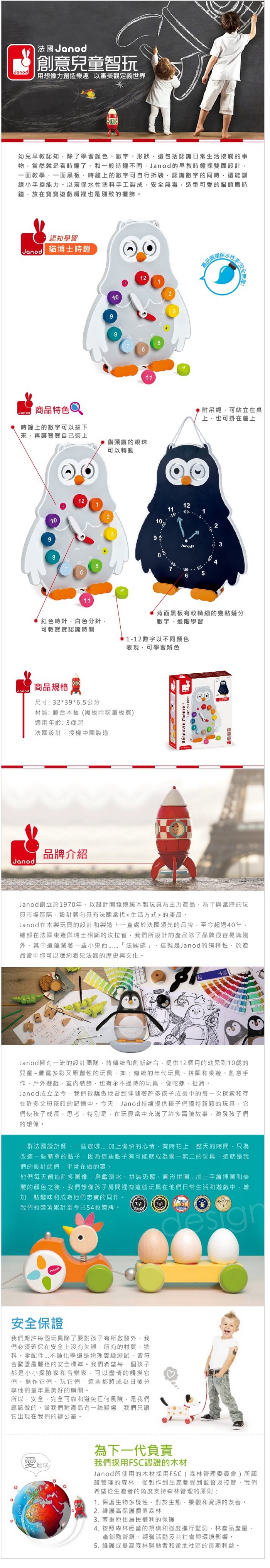>{振昌文具}【請先來電洽詢庫存】【法國Janod】認知學習-貓博士時鐘 J08132 /組