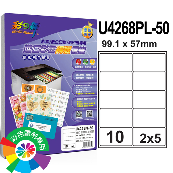 ★產品特性:採用銅版紙材表面帶有光澤度,搭配耐溫及加強黏性配方,使貼紙附著性強,就算是貼在玻璃或塑膠瓶上,也不會輕易脫落。多層次膠料可承受高溫的環境,依然不會改變其貼紙性質,在一般雷射、影印機列印上,表現卓越。雷射列印紙張設定請選擇特厚紙或超重磅光面選項,網路可直接下載WORD列印格式操作簡單方便,最適合於一般郵件地址、名條、產品標示、財產列管、容器等標籤的使用。